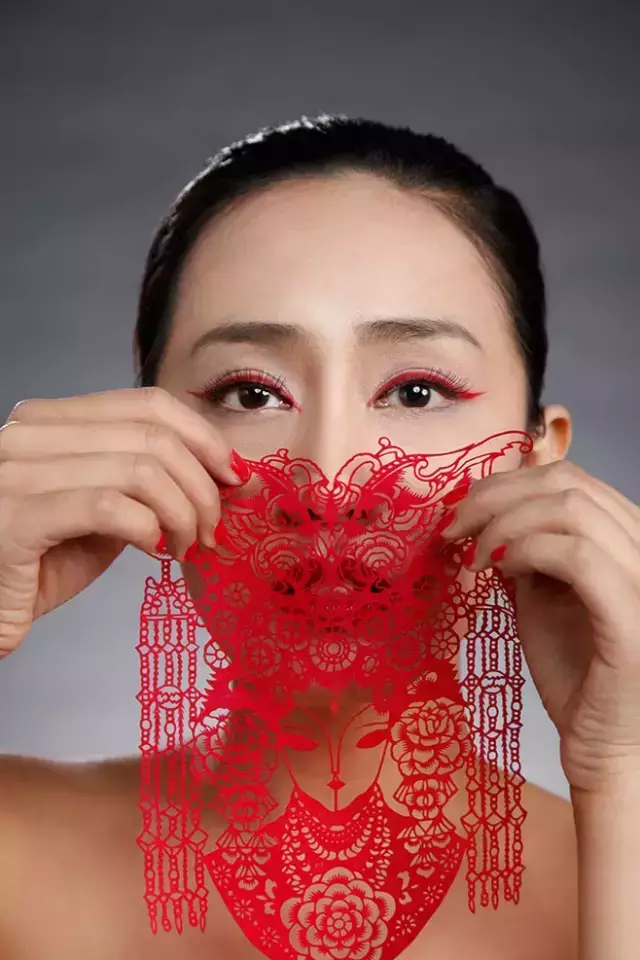 传统手艺剪纸,以窗花等形式浸润着中国人的生活。红色剪纸,更是象征着喜庆。新娘剪纸,热烈却又静美,内敛端庄,已然分不清这份气质是缘由中国剪纸,还是中国女人。