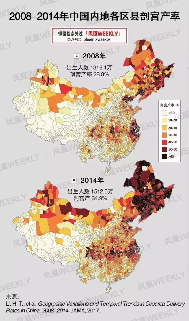 中国剖腹产地图,可以发现,东北地区的剖腹产率最高。