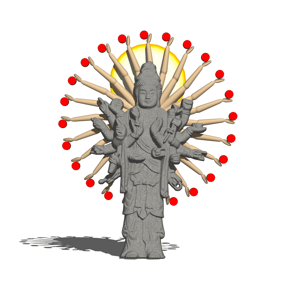 坐在千手观音的轿厢里面,为尘世祈福,为自己开光,生活过得圆圆满满。