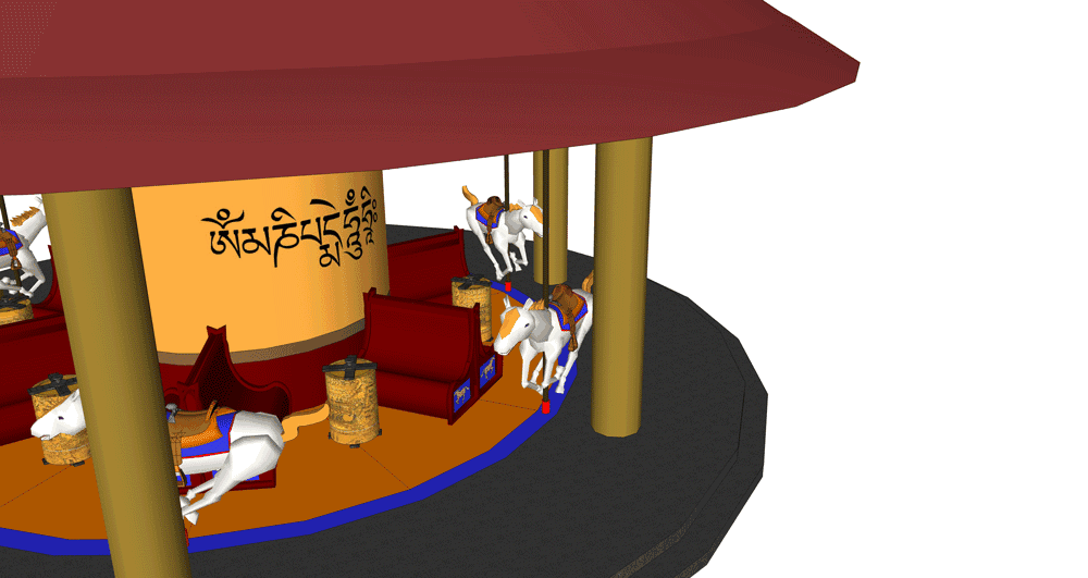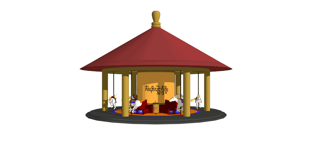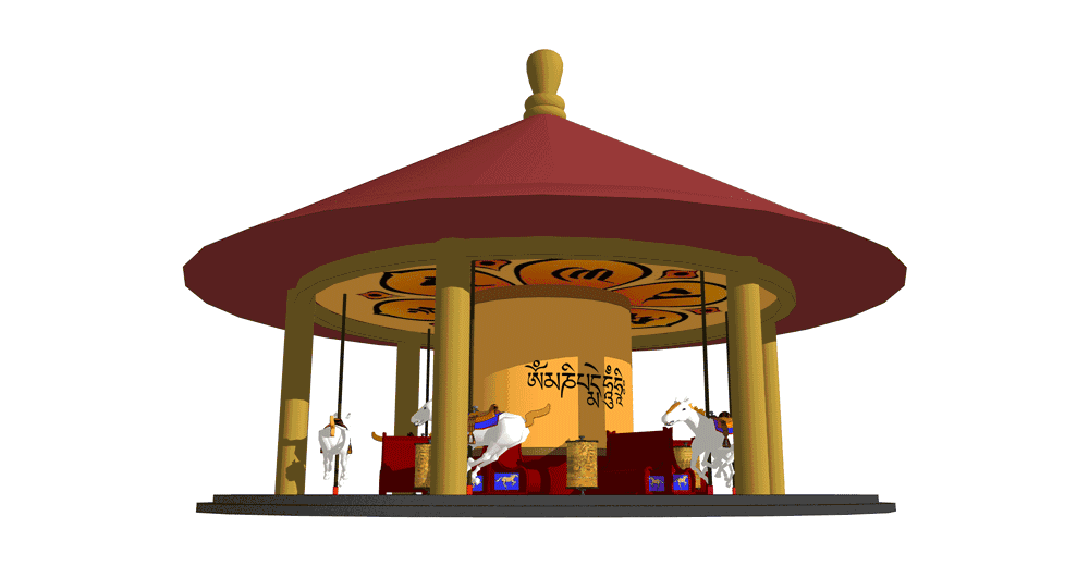 其实还有一个,旋转木马转轮藏殿。转经筒是一个特别好的产品设计。因为当年识字的人不多,为了让大家更多的人都能够感受到宗教的氛围,不识字那你就拿这个转一圈,这不就相当于是读了一遍了吗?