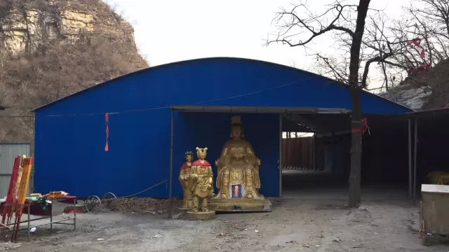 既然它有这么大的人流量和人气,那肯定会有一些很独特的地方。这个寺庙最大的一点不同在于它是一个个人承包制的,山下的马头村在经营这个庙。也就是说只要你能出钱,就可以承包一个前殿、正殿,或者财神殿,一年交租金。然后你自己就去布置里面的佛像和壁画。