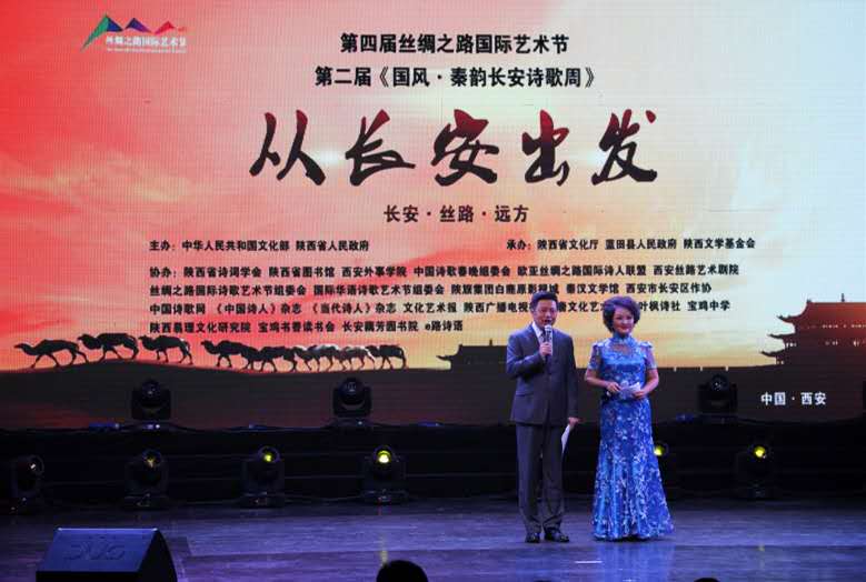 9月8日下午,国家文化部和陕西省政府主办的第四届丝绸之路国际艺术节第二届“国风·秦韵长安诗歌周”活动在西安丝路艺术剧院拉开帷幕。出席的主要领导有陕西省总工会党组书记、主席白阿莹,陕西省慈善协会会长刘维隆,陕西省政协常委文教委主任雷涛,陕西省文化厅党组书记、副厅长明平英,陕西省诗词学会会长孟建国,陕西省文化厅丝绸之路国际文化艺术中心主任徐敏等,海内外丝绸之路沿线300余名诗人汇聚长安。