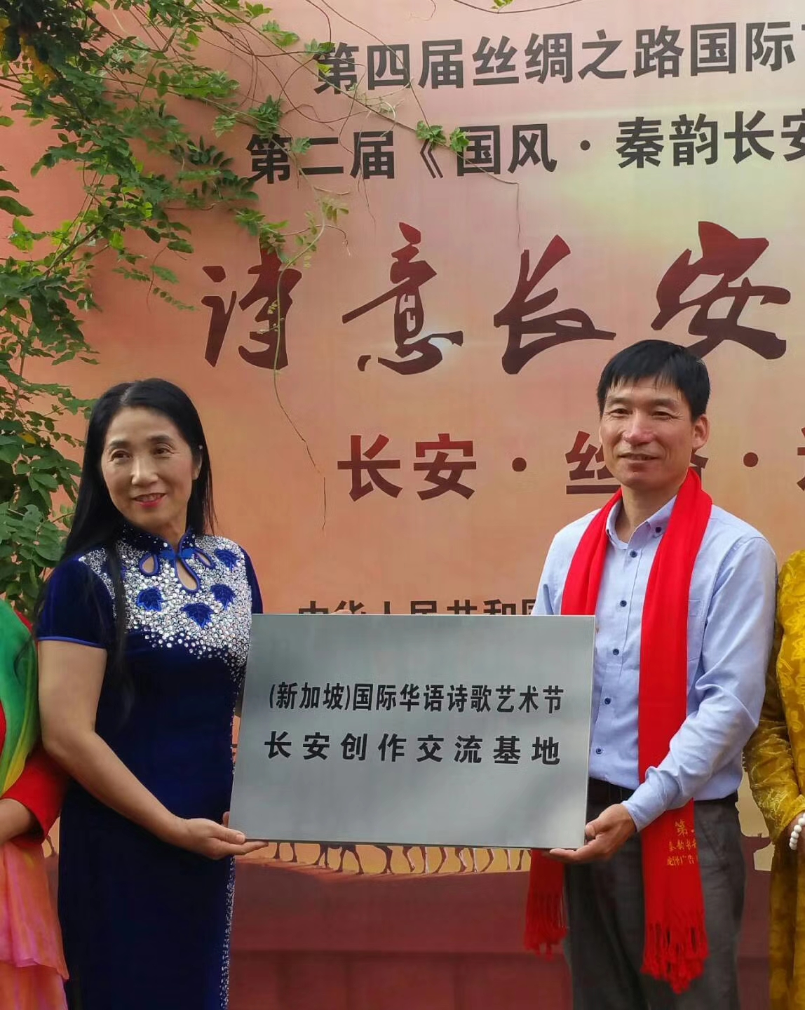 借着这次盛会,新加坡国际华语诗歌艺术节在西安启动,并给香港丝绸之路诗歌艺术节主席、丝绸之路国际艺术节“国风·秦韵 长安诗歌周”总策划著名诗人、诗歌活动家王芳闻女士、中国诗歌春晚发起人、总策划、屈原后裔屈金星先生颁发国际华语诗歌艺术节文化艺术交流大使荣誉证书,联手将中国诗歌文化艺术发扬光大。