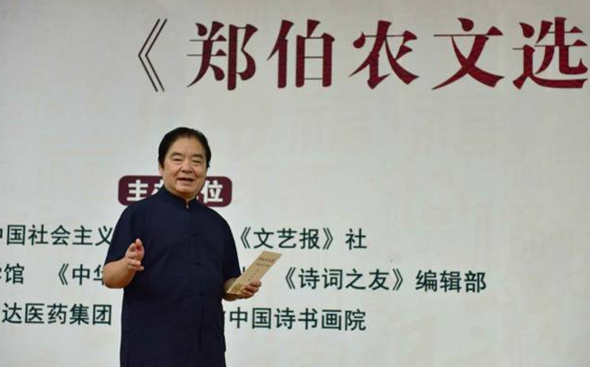 中国作家协会副主席吉狄马加首先致辞,代表中国作家协会向《郑伯农文选》出版表示祝贺。他说:《郑伯农文选》凝聚了郑伯农同志多年的心血,是当代重要的文艺理论著作。在党的十九大召开前夕,文艺界深入学习贯彻习近平文艺思想的背景下,《郑伯农文选》的出版具有积极的意义。郑伯农同志是当代一位重要的文艺理论家、诗词大家,具有很高的文艺修养、丰富的内心世界。他坚守马克思主义文艺思想的立场、观点和方法,针对文艺界的思潮和问题,写作了大量文艺理论文章,具有很强的现实性和方向性。对于我们更好地坚持文艺为人民服务、为实现两个一百年服务,为实现伟大中国梦服务都具有启示意义。郑伯农同志还为中华诗词的复兴与繁荣做了卓有成效的组织工作,并创作了大量诗词作品。他的诗词有生活、有真情、有灵魂,体现了共产党人的担当。对于文艺界用正能量出好作品,树立好的风气,创造好的氛围和环境,创作反映人民创造新生活的伟大实践的优秀作品,具有榜样作用。