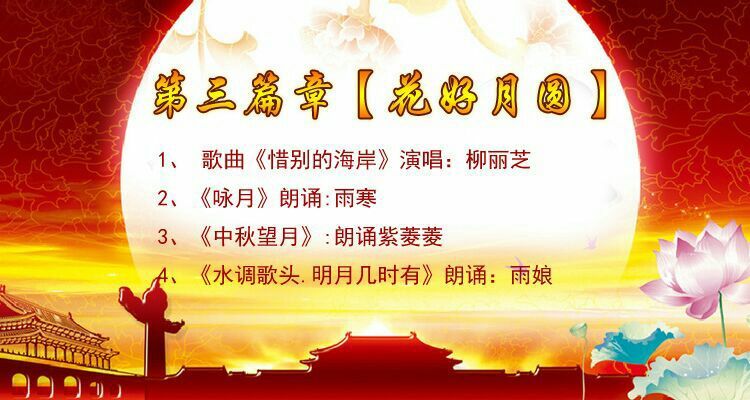 《喜迎国庆 欢度中秋》一一现代诗歌传媒红色诗歌朗诵文艺晚会 (人人文学网讯-梦飞翔): 金秋十月庆国庆,花好月圆度中秋。神州大地皆欢腾,祝福祖国万年盛。2O17年9月25曰晚八点,由现代诗歌传媒总部发起,现代诗歌传媒红色栏目组承办,全国各总社协办,一