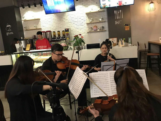诗歌主题音乐会从下午七点开始,历时三个小时,从四重奏到小提琴独奏,从兄弟之情到追忆母亲、从花草情怀到敬畏生命、从《国旗之礼》(张三醉作品)到《一带一路》(王彬作品)等等,层层深入,引人入胜,引来阵阵喝彩、令到场者酣畅淋漓,掌声不断!本场诗歌主题音乐会得到了北京云炫乐队的全程赞助演艺支持。