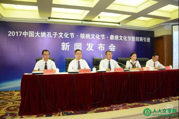 9月18日,2017中国•大姚孔子文化节•核桃文化节•彝绣文化节新闻发布会在昆明举行。会上,大姚县委常委、宣传部长李国荣表示,与往年相比,今年活动丰富多彩,邀请海内外从事孔子文化研究的专家学者来到大姚共同对孔子文化、思想、精神进行主题演讲、研究和传承。并邀请国际国内外著名诗人、翻译家、诗歌评论家及云南省本地诗人艺术名人等齐聚大姚,共同开展诗歌研讨、朗诵及创作。