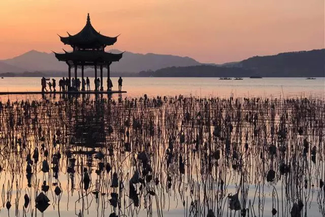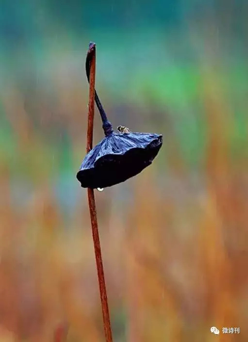 不信你看,在满池的残枝败叶当中,一个个孕育子实的莲蓬轻轻晃荡着,偶尔低下头颅,乌黑坚硬的莲子便趁机溜出温养自己的房室,“扑通”一声轻响,入水的莲子在秋江上荡起一阵小小的涟漪。