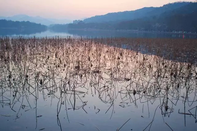 元代词人刘秉忠就十分钟爱这清美的残荷景象,为此写了很多的词,我偏爱这一首:“干荷叶,色苍苍,老柄风摇荡。减了清香,越添黄。都因昨夜一场霜,寂寞在秋江上。”