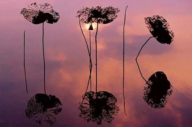 哪怕红颜不再,形容枯槁,倔强瘦削的枝干依旧在风中摇曳生姿,即便被狂风折了筋骨,一半沉入水中,一半依然傲立在天地之间,永远那么“亭亭净植”。