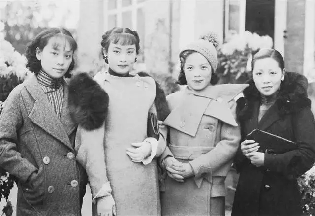 大衣秀 1935年,胡蝶与朋友合影照。 左起:袁绍梅、胡蝶、舒绣文、朱秋痕。