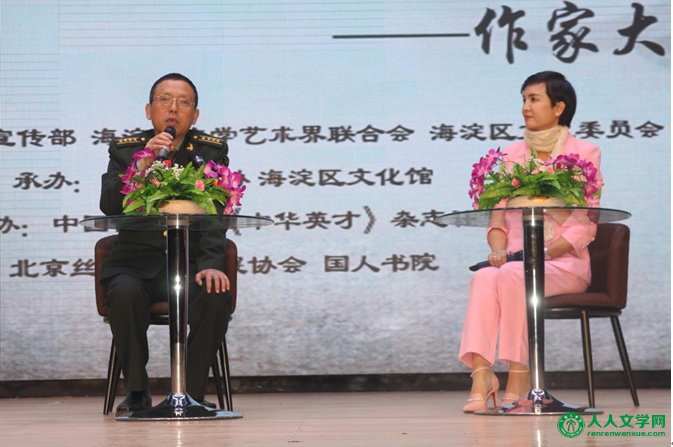 柳建伟在开场白中说到:习近平总书记在十九大报告提出“坚定文化自信,推动社会主义文化繁荣兴盛”,特提出“要坚持为人民服务、为社会主义服务,坚持百花齐放、百家争鸣,坚持创造性转化、创新性发展”。这也是“百川汇海.作家大讲堂”的特点和很好的践行。说到这,柳建伟以军人特有的尊重给主创团队——海淀作协敬礼。这也博得了在场观众的掌声和共鸣。
