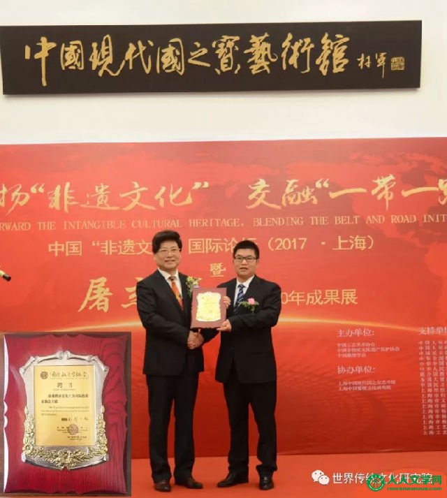 10月29日, “弘扬‘非遗文化’、交融‘一带一路’为主题的中国非遗文化——2017上海国际论坛·暨屠杰大师艺术人生50周年成果展”在上海中国现代国之宝艺术馆隆重揭幕。联合国教科文组织、中国人民政治协商会议全国委员会、中华全国归国华侨联合会、中华人民共和国文化部非遗司、中国民主促进会中央委员会、上海市文化广播影视管理局等恭贺屠杰大师艺术人生50年成果展。全国政协委员、上海市侨联副主席屠杰先生被授聘为世界传统文化研究院常务院长、国际收藏家协会主席。