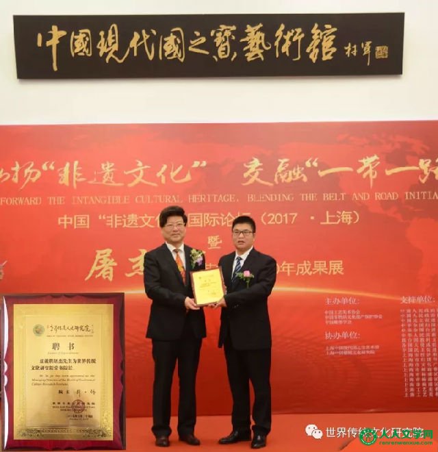 在“弘扬‘非遗文化’、交融‘一带一路’为主题的中国非遗文化——2017上海国际论坛·暨屠杰大师艺术人生50周年成果展”之际,举行世界传统文化研究院、国际收藏家协会受聘仪式,有着非凡的意义,这是世界文化史和中国文化史上的一件大事,也是国际文化艺术界一件值得庆贺的喜事!