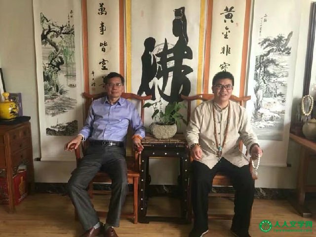 陈玉才教授和国际联合报社总编辑金笛先生在上海和颐酒店合影