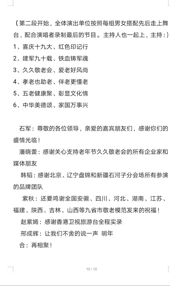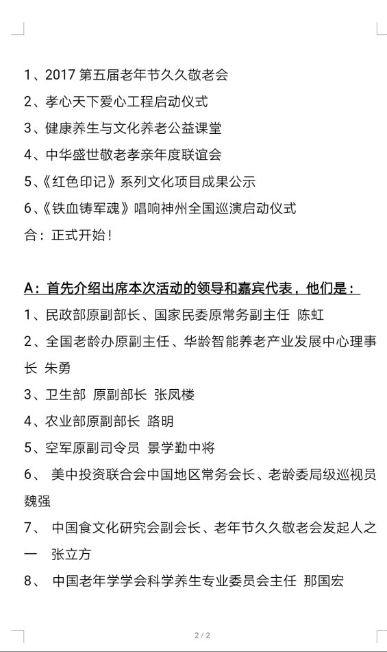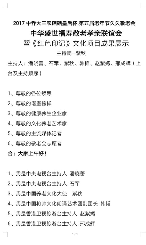 2017中华盛世福寿孝亲敬老联谊会曁《红色文化》文化成果展示文艺演出主持词