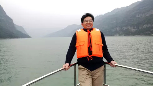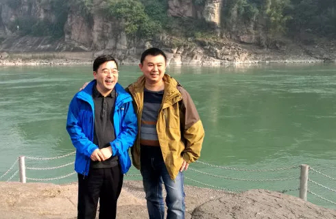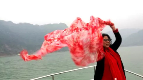 从长江之尾游来的两条鱼 韩可胜与瑞箫 游到了长江的起点 韩可胜与身材苗条的县长谈笑风生 没有平仄,如同和我的那首绝句 而瑞箫无聊地抛着她的红纱巾,在风中拍照 我偶尔出现在她的画面里 成为另一种风景
