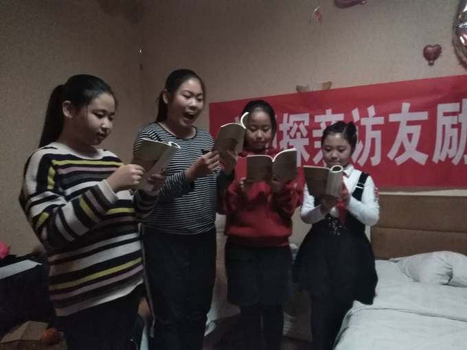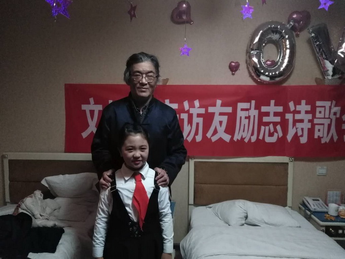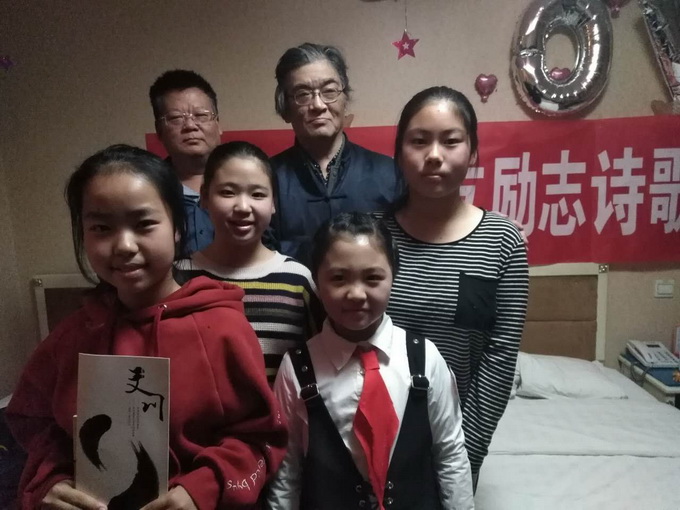 老朋友相见,分外亲切!简单的寒暄之后,文川探亲访友励志诗歌会便开始了。此刻,没有诗人、老师、学生、家长之分,大家都是朗诵者。