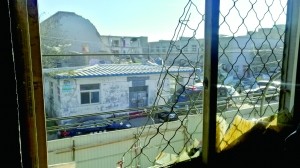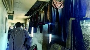 二层是租户居住区,走廊里悬挂的衣服全部染上了烟熏黑痕。