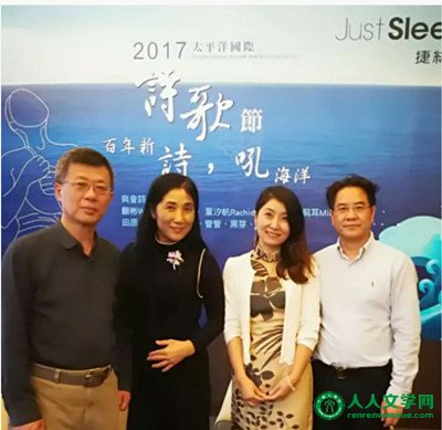 诗人韩昕余与太平洋国际诗歌节总策划和发起人著名诗人、翻译家陈黎先生、香港之夜总策划、著名女诗人凌微、深圳著名诗人,上一届太平洋诗歌奖得主朱涛先生合影。