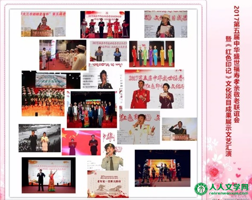 文化公益网(北京讯):2017年11月18日,第五届中国老年节久久敬老会暨《红色印记》文化项目成果展示活动在北京御仙都盛大举办,民政部原副部长、国家民委原常务副主任陈虹,全国老龄办原副主任、华龄智能养老产业发展中心理事长朱勇,国家卫生部原副部长张凤楼,农业部原副部长路明,空军原副司令员景学勤中将,美中投资联合会中国地区常务会长、老龄委局级巡视员魏强,中国食文化研究会副会长、老年节久久敬老会发起人之一张立方,中国老年学学会科学养生专业委员会主任那国宏,全国健康产业工作委员会副主任、北京养生文化创意产业协会会长赵立冬教授,中国保健协会机构养老分会会长刘巧玲,中央国家机关老干部文化健康中心宣传部长张铁林,国际食品标准认证中心(中国地区)总监何庆芸教授,中国将帅文化论坛组委会主任董建林,朱德总司令儿媳、中国文化养老十大楷模、92岁高龄的赵力平女士、香港卫视旅游台执行台长蔡军、丁士镛等40多位将军代表以及来自全国的爱心人士和新闻媒体约400余人出席了盛会。 中国养老文化大使紫秋首先主持了上午的开幕式,随后,她邀请中国将帅文化朗诵艺术团副团长韩韬、中央电视台主持人石军、潘晓蕾、香港卫视旅游台主持人赵紫嫣、邢成辉联袂主持了《红色印记》文化项目成果展示活动。
