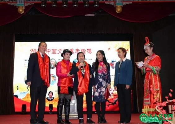 韩昕余女士同朱德儿媳赵力平老妈妈一起上台领奖