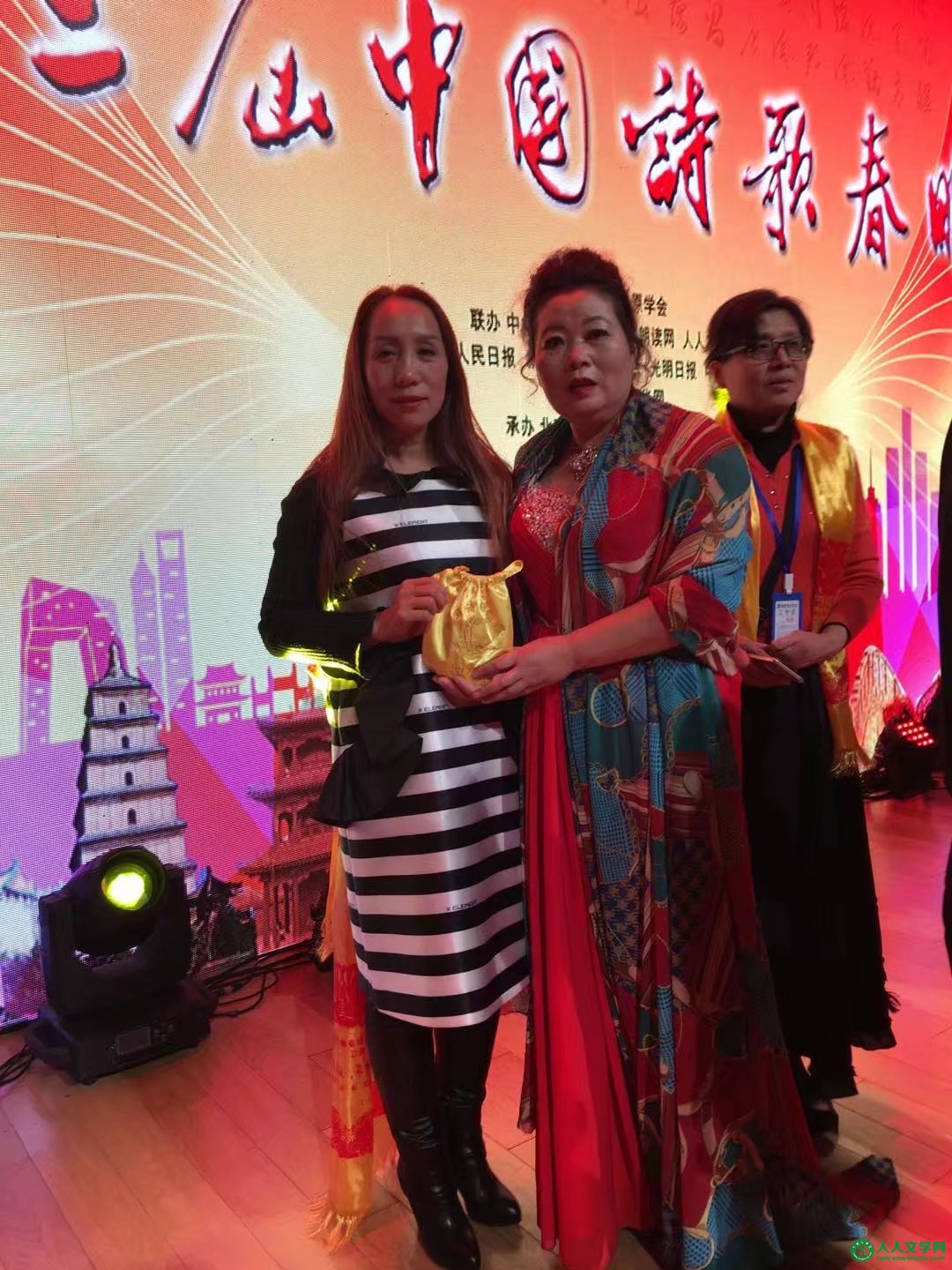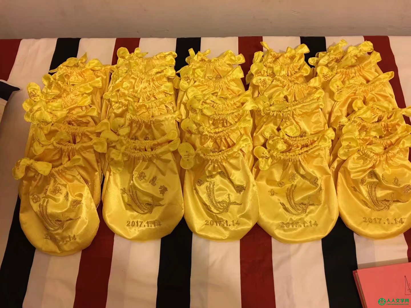 ![]() 还有2017第三届中国诗歌春晚中国十佳青岛崔子诗社社长崔子衿,绣制五十六个黄色锦缎香囊代表中国五十六个民心中的诗意:对祖国的热爱和祝福!装上“中国诗歌息壤”又一亮点,汇聚在2017第三届中国诗歌春晚北京总会场的舞台上的息壤箱里。“青岛诗人”完美登陆“中国诗歌春晚”!