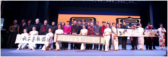 ![]() 2018首届中国书画春节联欢晚会在北京成功举行(新闻通稿) “丹青国韵,翰墨千秋”。由人人书画网发起,联合北京市海淀区作家协会共同举办,多家书画单位协办的“海之春”首届中国书画春节联欢晚会于2018年2月4日下午在海淀区文化馆剧场成功举行。 ![]() 书画春晚主持人:李军、柏荷、李柏霖、杜雨桐 ![]() 开场古典舞《百花争艳》 本届书画春晚指导单位由中国梦组委会、中华炎黄文化研究会自然国学专业委员会、中国长城学会老兵方阵组委会三家单位组成。著名书画家雷正民先生为首届中国书画春节联欢晚会题字。国内外众多书画家参与了本届书画春晚的相关活动。晚会当天,应邀而来的300多位书画界知名书画艺术家出席了本次盛会。活动得到了北京市海淀区文化委员会的大力支持。 ![]() 歌手肖爽演唱《春回大地》 ![]() 80岁书画家艾庆芸带领小学生书写《五福同春》 首届中国书画春晚在全国和海外设立了18个分会场,除北京主会场外,还在上海、山东、河北、浙江、云南、广东、广西、湖南、湖北、甘肃、陕西、澳大利亚、英国、法国等地区设立分会场。全国会场及海外会场将在春节期间陆续举办文艺晚会,开展书画相关的活动。 ![]() 尚彦杞演唱《水墨中国》画家吴迪现场创作山水画 ![]() “旗袍皇后”杰妮展示自己设计绣有“中国书画春节联欢晚会”徽标的旗袍 晚会节目丰富多彩,以书画为主题,展现了从古代到当代书画的发展历程,选择历史重要节点,通过演员表演,背景展示,艺术表现,达到书画艺术的主题思想。晚会共分为五个篇章:书画同源、魏晋风骨、唐宋元韵、明清雅苑、盛世华章。内容有舞蹈、朗诵、京剧、独唱、书画表演、古琴演奏、旗袍表演、原创歌曲等形式。 ![]() 青春歌手李雨橙演唱原创歌曲《星空与海》 ![]() 旅欧美歌唱家孙禹演唱原创歌曲《老屋》 ![]() 评剧新派第三代传人田永玲与书法家吴力嘉同台演出 晚会向十大书画家颁发了奖章、奖牌。十大书画家代表胡国鼎、吴迪、杨信、陈溪峋、晁谷、刘兰亭、林中阳、舒乃仁、张成银、周永、薛连清等人出席了现场颁奖活动。现场展示了“中国书画春晚百米书画长卷”,长卷分为书法卷、山水卷、花鸟卷、人物卷。同时公布了参与百米书画长卷创作的书法家、画家名单。 ![]() 十大书画家颁奖,画家胡国鼎代表发言 ![]() 展示“中国书画春晚百米书画长卷” ![]() 现场座无虚席 北京电视台记者现场采访了中国书画春晚总策划王博生、活动策划王威。在谈到书画春晚的发起及目的时,王威强调了群众基础与民族文化的自信。王博生说,用晚会这种形式,让更多书画艺术家通过春晚舞台与网站平台展示作品,目的是为了提高大众的艺术欣赏水平。在今后的发展中,中国书画春晚及人人书画网,将为更多书画艺术家提供 “一条龙”式的综合服务。(摄影:高群、王毅、苗文录、牛东升、曹发来) |