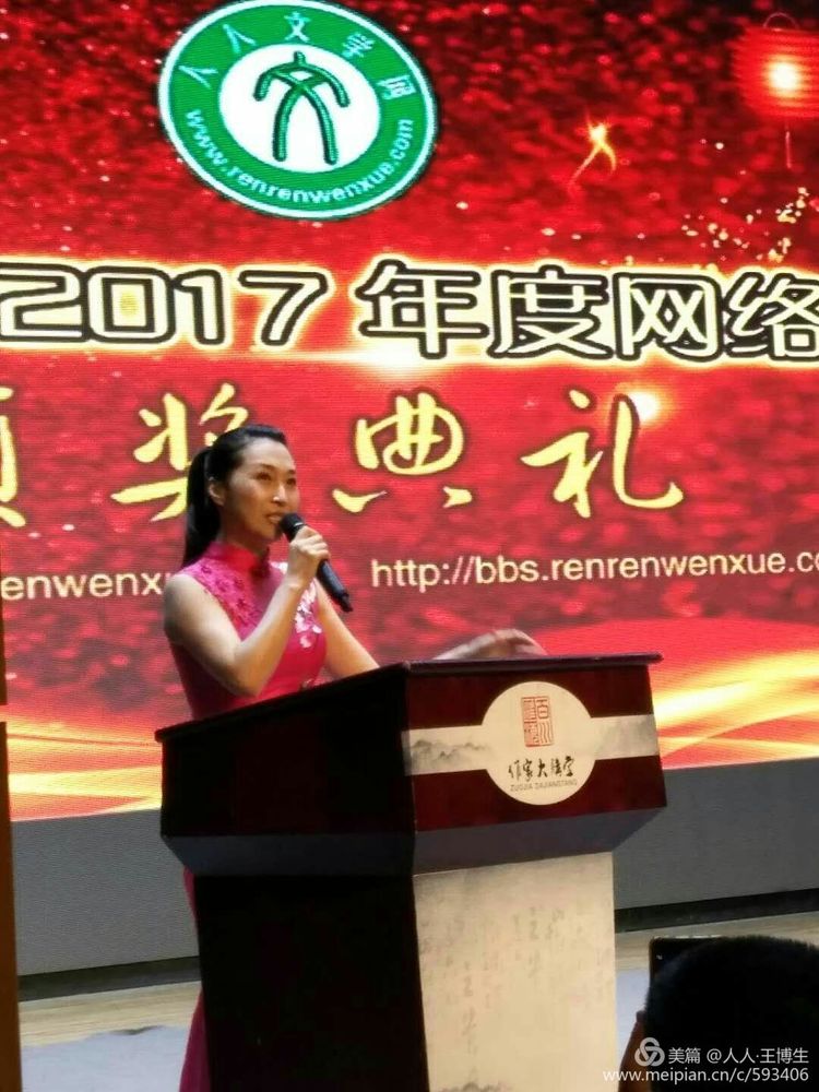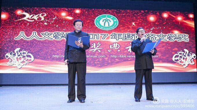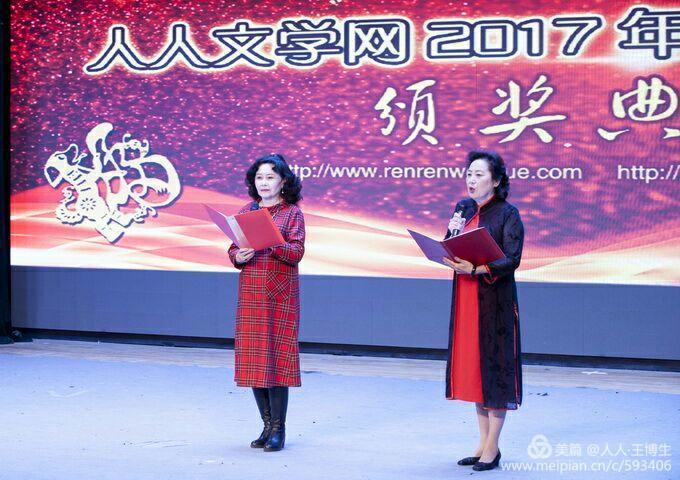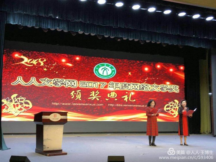 人人文学网讯:由人人文学网发起创办,联合北京市海淀区作家协会共同举办,名家荟萃文化传媒、水月青莲文化传媒、洞庭之声朗诵艺术团、楚韵楠香国际发展有限公司、活动圈等单位协办的人人文学网2017年度网络文学奖颁奖典礼,于2018年2月4日上午在海淀区文化馆剧场成功举行。活动得到了北京市海淀区文化委员会的大力支持。