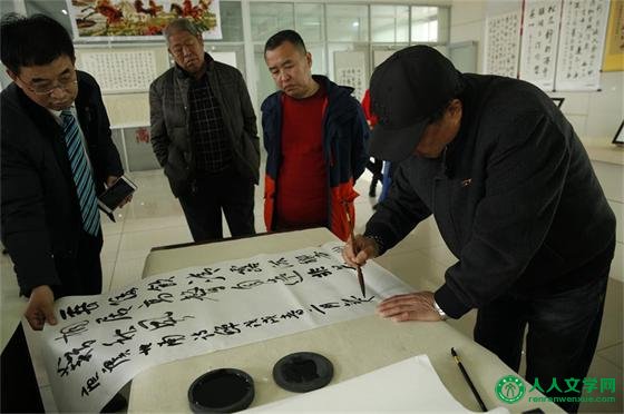出席开幕式的领导和嘉宾有:沧州开发区副处级组织员组织部部长杨海鹏、中国书法家协会会员、原沧州市书协副主席张观儒;中国书法家协会会员|、沧州市书法家协会副主席房世良;中国书法家协会会员、河北省书法家协会理事、沧州市书法家协会副主席田雨潇;中国书法家协会会员、市书协副主席唐中元;沧州市书法家协会副秘书长于瑞生;沧州摄影家孙希旺;沧州东塑集团御河酒业生产公司总经理庄建成。