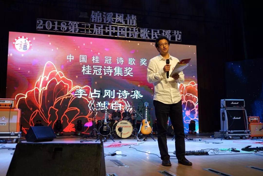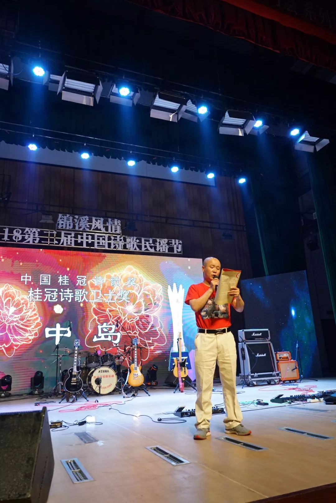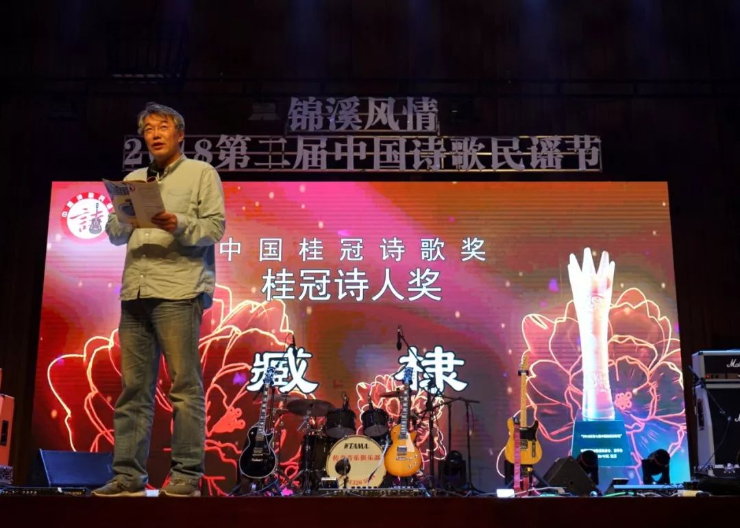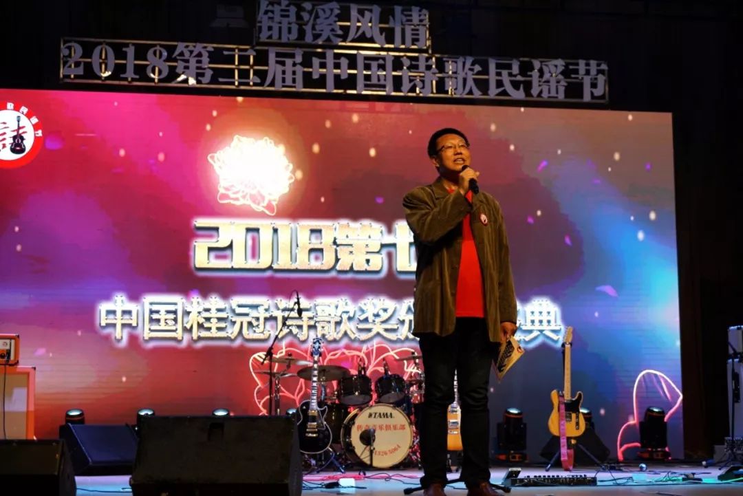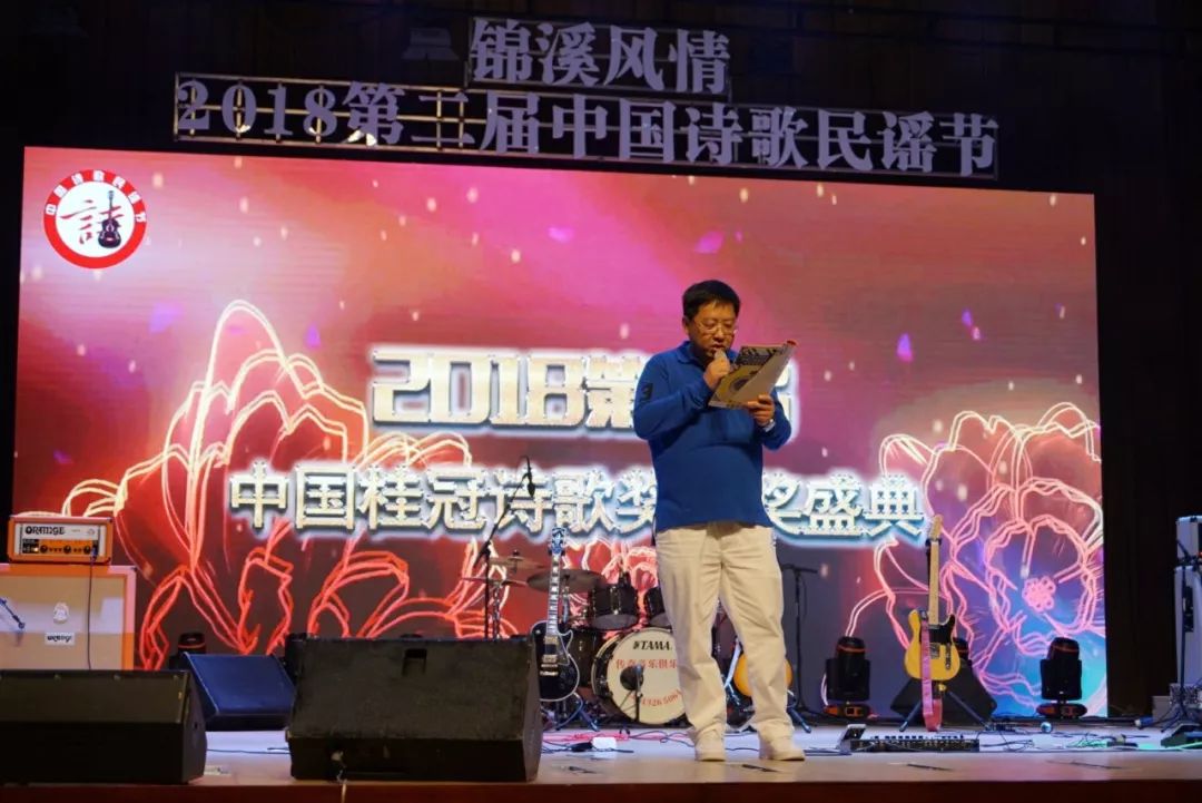 4月29日晚,作为“锦溪风情”2018第二届中国诗歌民谣节的重头戏,备受文坛瞩目的“第七届中国桂冠诗歌奖”颁奖盛典,于江南古镇锦溪剧院盛大开幕。颁奖盛典由诗人李德武主持。组委会主席祁国介绍了桂冠奖历程、荣誉主席陆渔宣读了评奖章程,鉴评会任值主席芒克说明了评奖过程。