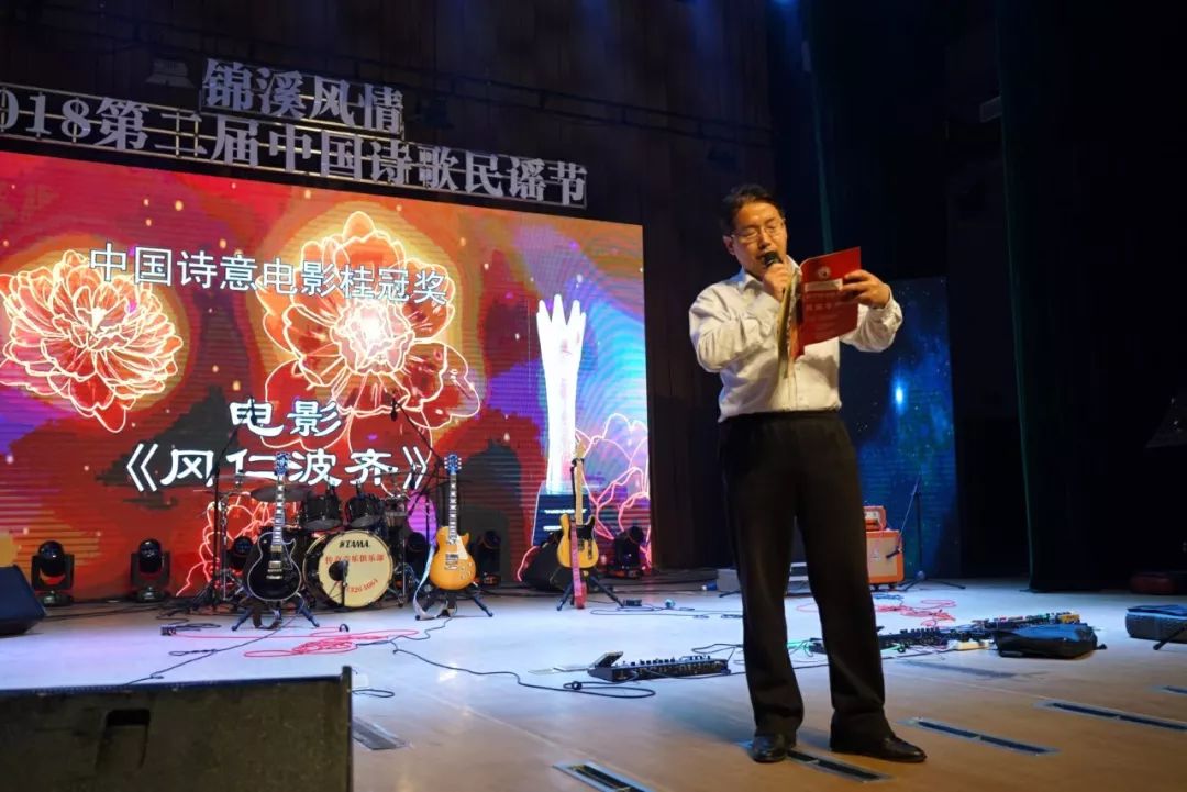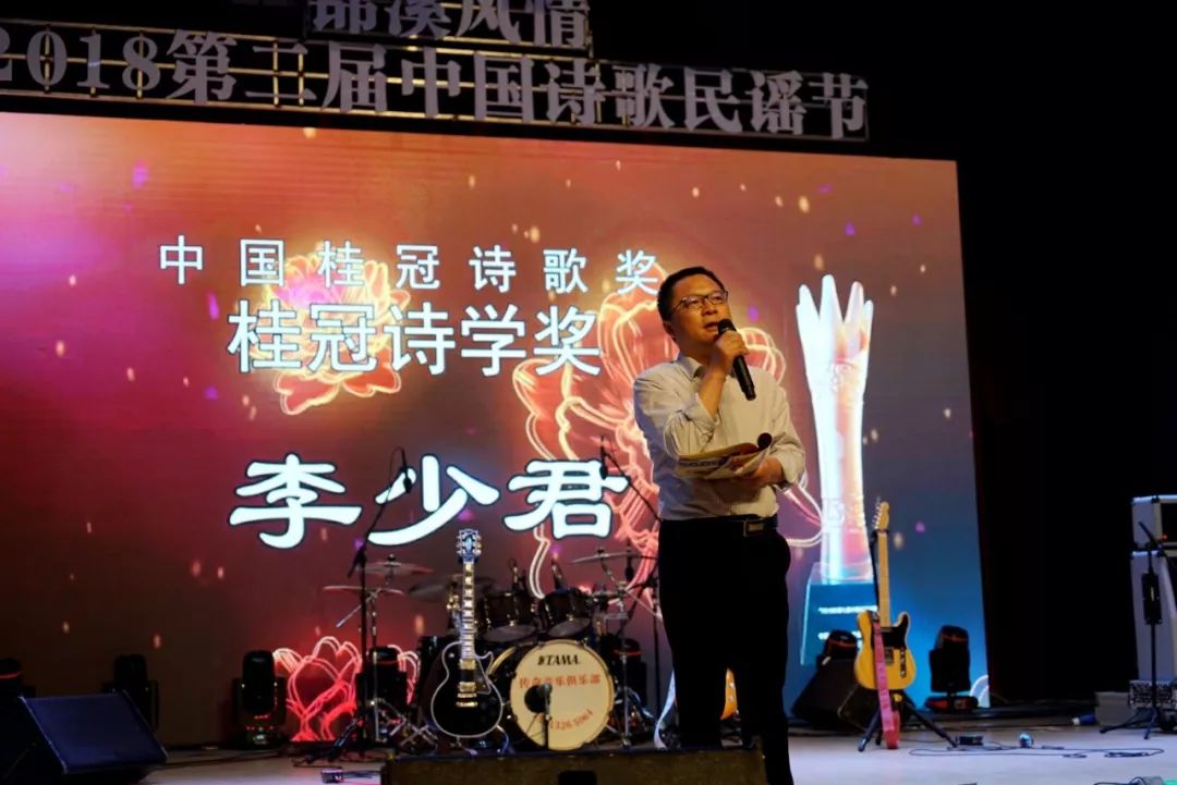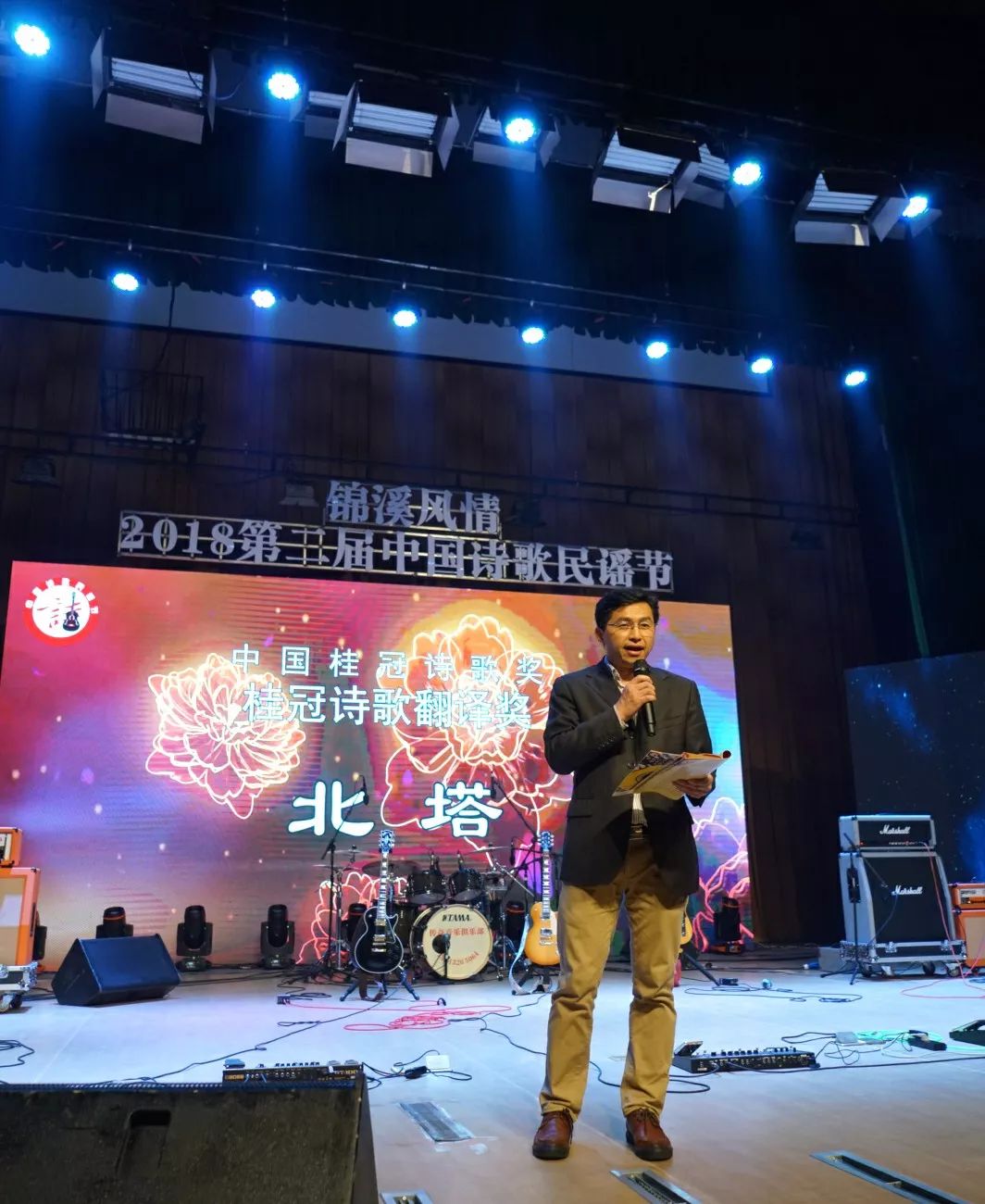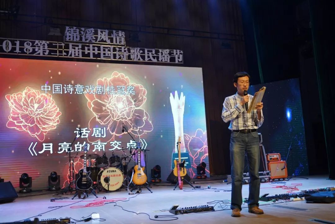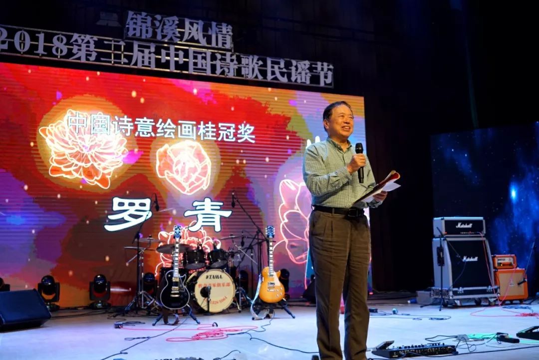 4月29日晚,作为“锦溪风情”2018第二届中国诗歌民谣节的重头戏,备受文坛瞩目的“第七届中国桂冠诗歌奖”颁奖盛典,于江南古镇锦溪剧院盛大开幕。颁奖盛典由诗人李德武主持。组委会主席祁国介绍了桂冠奖历程、荣誉主席陆渔宣读了评奖章程,鉴评会任值主席芒克说明了评奖过程。