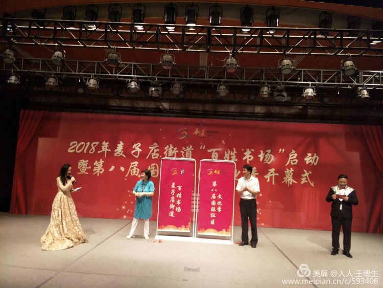 麦子店街道2018年百姓书场系列活动启动暨 第八届国际社区文化季开幕式 人人文学网讯:2018年5月25日,为了深入学习贯彻落实党的十九大精神,将中华传统文化与改革开放时代风采相结合,将走进新时代再创新辉煌的时代主题与社区居民日益增长的文化需求向结合,
