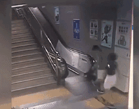 女孩不小心掉落到电梯井中, 旁边路过的男子立马转身拉住了她! ▼
