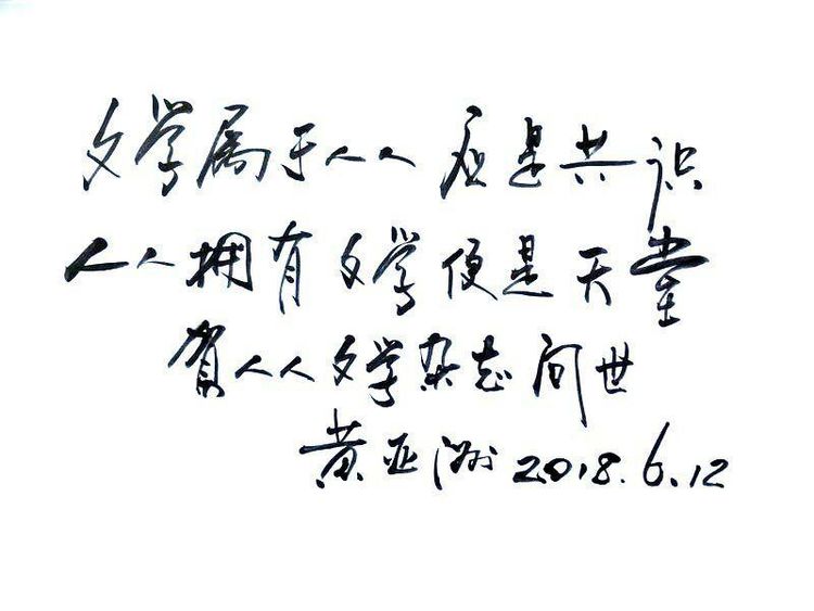 庆祝《人人文学》杂志创刊!《人人文学》杂志名誉顾问黄亚洲先生贺词文学属于人人应是共识,人人拥有文学便是天堂。大型文学刊物《人人文学》杂志创刊,面向全国征集优秀作品!