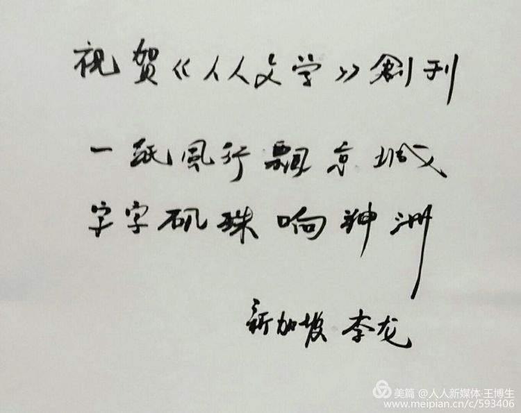 祝贺《人人文学》创刊,希望杂志越办越好!越办越精彩!