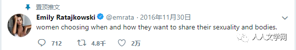 她第一时间就发推特谴责这个记者:不管她的过去是怎样的,你都不该说她是荡妇。