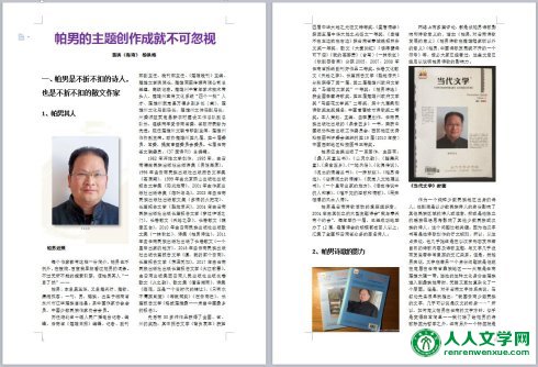 ![]() 一、帕男是不折不扣的诗人,也是不折不扣的散文作家 1、帕男其人 每个作家都有这样一份简介,帕男也不例外,在搜狗、百度我早就看过帕男的词条。不过无所不能的搜索引擎,使帕男其人“一目了然”—— 帕男,本名吴玉华,又名楚天行、楚歌、潇湘孤客、一勺,男,瑶族,出生于湖南省永州市江华瑶族自治县。系中国作家协会会员、中国少数民族作家协会会员。 历任湖北省十堰人民广播电台记者、编辑,云南省《楚雄日报》编辑、记者、副刊部副主任、晚刊部主任、《楚雄晚刊》主编、楚雄文学院院长、楚雄同图传媒有限公司总经理、高级记者。楚雄州中青年学术技术带头人、楚雄州宣传文化系统“四个一批”人才、楚雄州武定县万德乡副乡长(兼)、楚雄州文化局副局长、楚雄州文体局副局长、州委派驻武定县新农村建设工作总队副总队长,连续两年受云南省委、省政府表彰为先进。现任楚雄州文联专职副主席、楚雄州作协副主席。政协楚雄州第九届、第十届委员、常委、提案审查委员会委员。七届云南省文联委员,《37度诗刊》总编辑。 1982年开始文学创作,1995年,由云南德宏民族出版社出版诗集《男性高原》,1996年由云南民族出版社出版报告文学集《高原潮》,1999年由北京燕山出版社出版报告文学集《阳光地带》,2001年由作家出版社出版诗集《落叶与鸟》,2003年由云南民族出版社出版散文集《多情的火把花》、长篇报告文学《裂地惊天》,2004年由云南民族出版社出版长篇报告文学《穿过神话之门》、长卷散文《天地之孕》、长卷散文《魂牵五台》,2010年由云南民族出版社出版散文集《一抹秋红》、诗集《帕男诗选》,2011年由云南民族出版社出版了长卷散文《一个皇帝出家的地方》,2016年由云南民族出版社出版长篇报告文学《滇,我的那个云南》、长篇报告文学《芳泽无加》,2017年由云南民族出版社出版长篇报告文学《大江歌罢》,由云南出版集团云南人民出版社出版长卷散文《火之韵》、散文集《俚语湘南》、诗集《落花,正是一个旧时代的禅让》、《只有水不需要剃度》《等我驾到》《在云南在》、长篇报告文学《格威楚雄彝——来自中国彝乡的报告》。 先后有50多件作品获得了全国、省、州的奖励,其中报告文学《背负哀牢》获第四届中华大地之光征文特等奖、《星宿情缘》获第五届中华大地之光征文一等奖、《幸福不在左边就在右边》获云南省春城晚报杯杂文奖一等奖、散文《大爱如虹》《读得蟹诗可下酒》《我的高黎贡》(合写)《一抹秋红》《秋到普者黑》分获2005、2007、2008年云南省报纸副刊好作品二等奖。长卷文化散文《天地之孕》、长篇报告文学《裂地惊天》分别获得了第一届、第二届楚雄州政府文学奖“马缨花文学奖”一等奖;《帕男诗选》获全国鲁藜诗歌奖、第三届楚雄州政府文学奖“马缨花文学奖”二等奖、第十九届柔刚诗歌奖主奖提名、中国首届城市诗歌奖二等奖。本人策划、主编,由李夏创作,云南民族出版社出版的《鼎食匠乡》一书,荣获中国版协科技出版工作委员会、西部地区优秀科技图书评委会组织的第19届(2010年度)中国西部地区科技图书三等奖。 帕男还主编出版了一系著作,主要有:《彝人天堂丛书》:《山灵水韵》、《踏舞天堂》、《鼎食匠乡》、《一地风俗》、《化佛传说》,《泥土的情绪丛书》:《一抹秋红》、《帕男诗选》、《沾满泥土的情绪》,《武定人文地理丛书》:《一个皇帝出家的地方》、《活在传说中的人和事》、《唱不完的酒歌和情歌》、《用来咀嚼的风土人情》。 帕男是云南诗歌活动的重要组织者,2004年由其创立的大型主题诗会“我与春天有个约会”,每年举办一届,已经成功地举办了12届,每届诗会的规模都在百人以上,汇集了全国和云南省众多的著名诗人。 ![]() 2、帕男诗歌的影响力 网络上有多篇评论,都是谈帕男诗歌影响和诗歌意义的,诸如《帕男,对云南诗歌发展的意义》《帕男诗歌在楚雄程家坝以外的意义》《帕男,中国诗歌发展绕不开的一个符号》等,想必大家已经看过,这些文章已经足以说明帕男诗歌的影响力。 作为一个纯粹少数民族地区出身的诗人,他到底是以少数民族诗人的身份影响了其他民族区域的诗人或读者,抑或是他独立的瑶族母语思考影响了其他少数民族或汉族的诗人,这个问题比较关键。因为他汉字书写是他诗歌创作的行文规则,所以,从这点来说,他几乎始终是在以汉字形态发布着自己的诗歌内容及诗歌主题,与文字几乎没有发生着非常重要的交汇关系。但是,就帕男来说,又存在着另一个身份问题就是他现在定居在云南省彝族地区——大概是云南楚雄大理一带。当他的这种文化身份由瑶族进入到彝族地带时,无疑又更加复杂化了一个层面。但是,对于云南文字体系来说,马叙伦先生很早就指出:“我国云南少数民族的文字,几乎可以说是汉文的前身……”所以,如何定义帕男在云南的文字方针,似乎是变得非常简单——我们除了给帕男的诗歌标签为哲学之外,还有另外一个标签就是历史。 更为直观的影响力——帕男除了著作的丰盛之外,还在于他对于推动诗歌艺术各种不同类型活动的积极参与、组织与实践。当然,更重要的还是在于他对现代诗歌传统的继承与创新方面。他以独特的创作手法,对美国自白派诗歌进行大胆的改进与创新,成