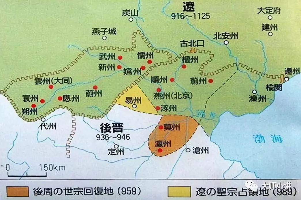 在中国历史上,长城唯一没有发挥过任何作用的是在宋朝,五代十国时期的后晋石敬瑭认契丹皇帝为父,将从东起山海关、西至雁门关以西的北方屏障燕云十六州拱手相让,之前少侠在清明上河图的系列文章中也谈到过北宋文人治国下废弛的军备,自始至终都无力从契丹人手里夺回燕云十六州,可以说中原大片的土地,包括都城汴京城都直接暴露在辽金的铁蹄之下:这就意味着一方面本就羸弱的北宋军队无险可守,另一方面辽金军队却来去自如,虽然北宋每年给辽、金送上孝敬的白花花的银子,还有各种贡品(比如《澶渊之盟》中北宋每年给辽岁币银10万两,绢20万匹),而且在河北的常年驻军就达30万之多,但依然无法改变它成为遭受游牧民族侵扰最严重的王朝的命运。直到明朝的时候,中原王朝再一次控制了燕云十六州,从公元936年到1368年,一共持续了433年,其中242年中原地区都为北方游牧民族所占据。