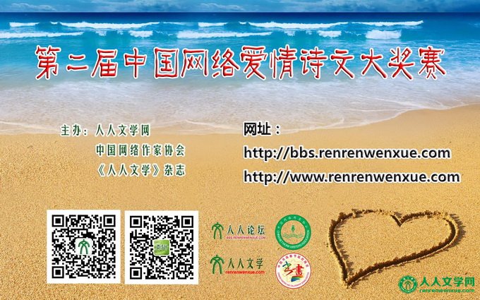 关于“爱情”这个古老而又年轻的主题,至今流传不衰。爱情诗文也在中国文学历史舞台占有独特的地位。古代就有一些歌颂美好爱情的诗词,从古到今,一直被人吟咏称颂。恰逢七夕,这个古老凄美的故事又将会点燃许多颗年轻的心。让奔腾的爱意,流淌在诗情画意的笔尖,根植在你、我、大家的心中。将美好的情感,真挚的情愫,融入到这一动人心扉的时刻……为了充分展示当代爱情诗文的优秀成果,推动中国网络文学发展,进一步繁荣爱情诗文的创作,人人文学网、《人人文学》杂志、人人论坛、中国网络作家协会及多家协办单位参与,特此举办“中国网络爱情诗文大奖赛”。