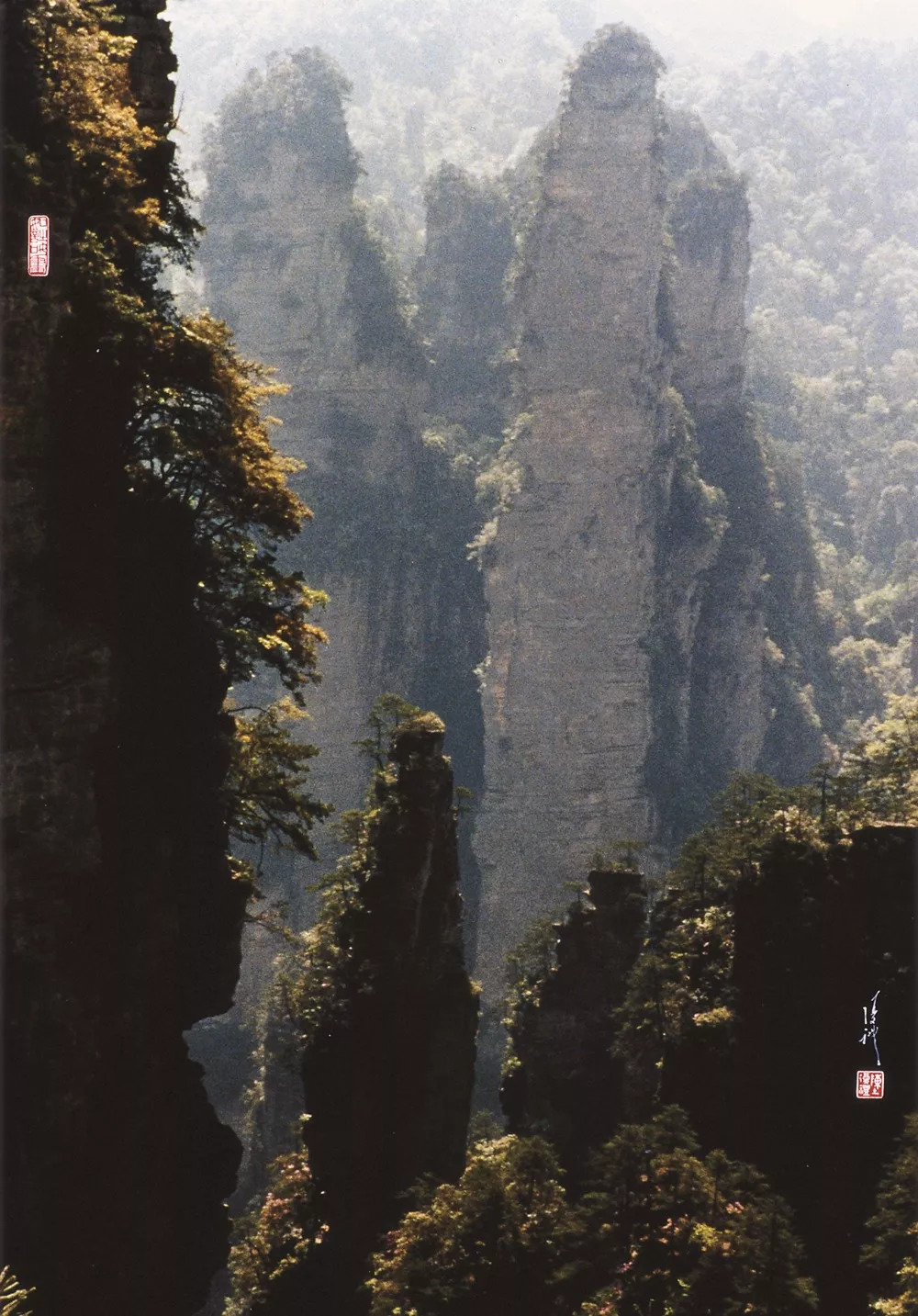 64岁 他和陈勃先生先后相约到 四川九寨沟、湘西张家界摄影 随后两个合作在香港《中国旅游》杂志 发表了多幅摄影作品和文章 没想到,一个个“养在深闺人未识”的荒凉山沟 被他们拍火了 ▼