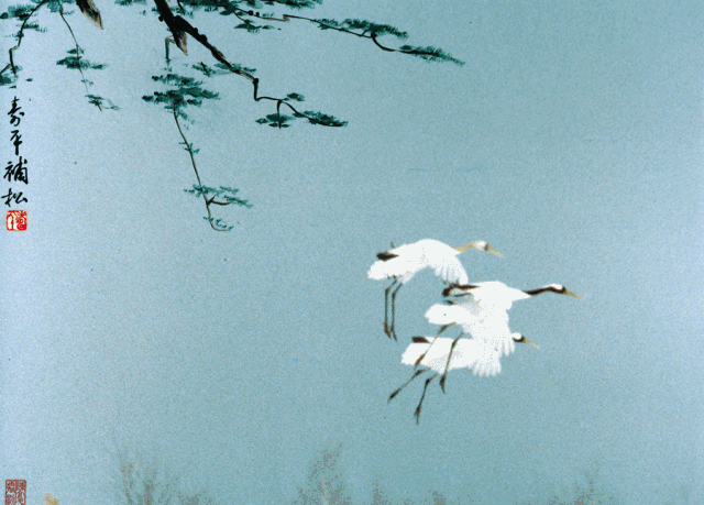 著名画家黄永玉也与陈老交好, 分别补上几只鸭和仙鹤, 成就了《秋江水冷鸭先知》和《松鹤图》。 ▼