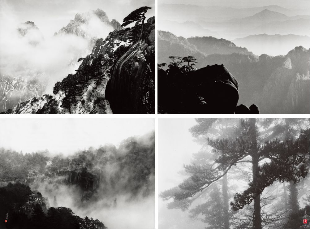 黄山系列作品就是写实和画意结合最好的体现 左下:1962年《雾绕黄山》右下:1978年《苍涛》