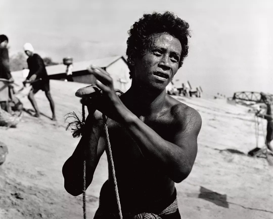 1967年 越南 《搏斗》 由两张底片套放合成。 茫茫大海,渔民在浪尖上奋力划桨, 天空之上,是波涛般的升腾云。 这幅作品所表现的感情是长期积累的, 更是他早期生活的写照, 表现出的是一种搏斗的精神。