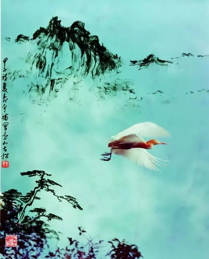 画家董寿平补上远山,古松,并题字, 一幅《乘风归去》就变得更为灵动起来。 ▼