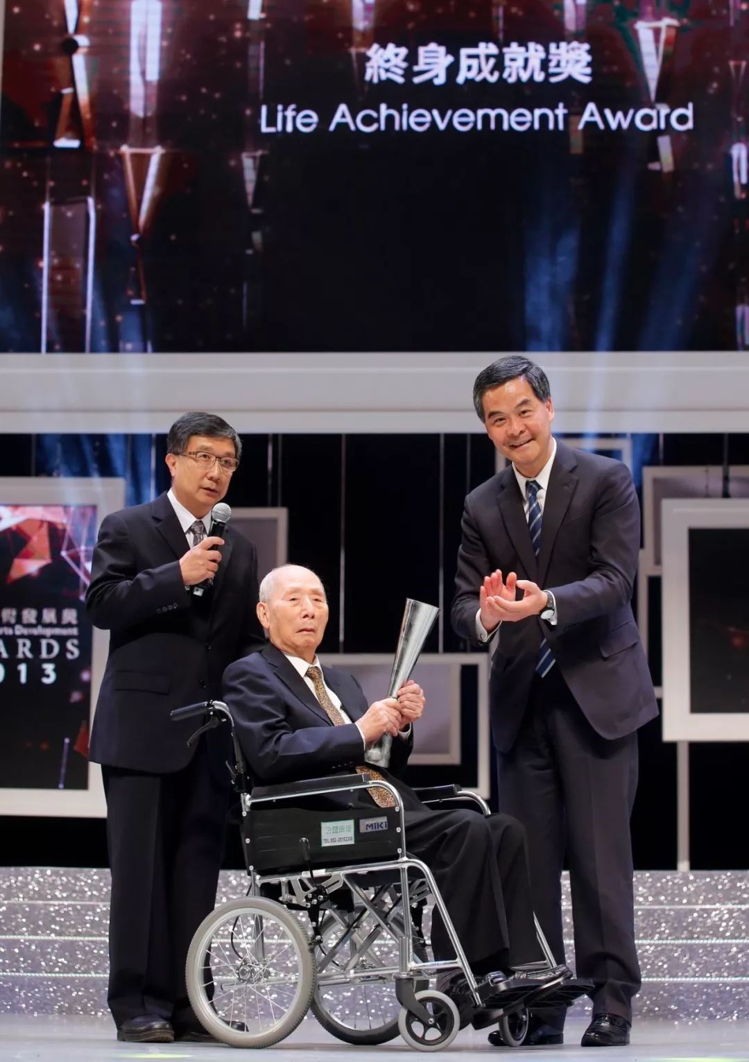 右起为:梁振英、陈复礼、陈惊雄(陈复礼儿子)