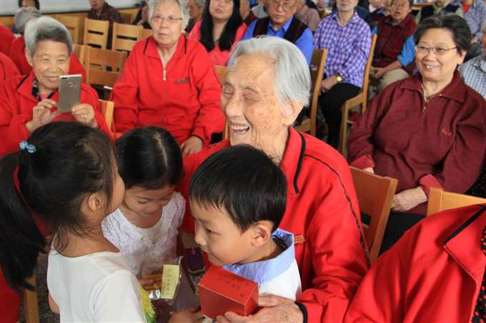 在福利院的大堂里一派喜气洋洋,老人们穿着统一的红色运动服,脸上洋溢着幸福灿烂的笑容。一切准备工作就绪,9点整,活动在热烈的掌声中正式开始。首先由京燕饭店副总经理刘新同志致辞,接着开场的是由航天机关幼儿园的小朋友为爷爷奶奶们带来的歌舞表演《森林音乐会》,穿着各种小精灵服装的孩子们愉快地唱着跳着,看着他们可爱的小脸和活泼逗趣儿的舞蹈动作,惹得台下的老人们纷纷伸出双手,都想要拥抱一下这些小精灵。