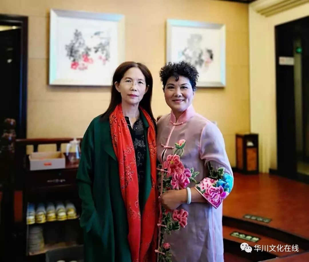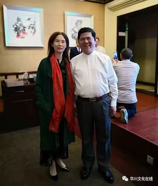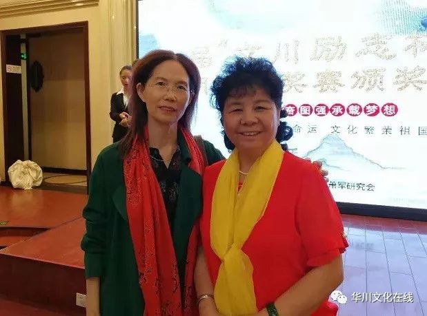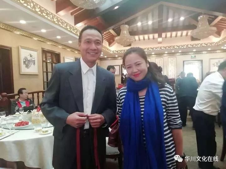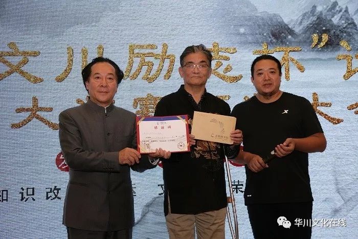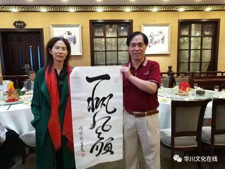 书法家王春起(右)为资深媒体人、本次活动总导演赠送书法一副。