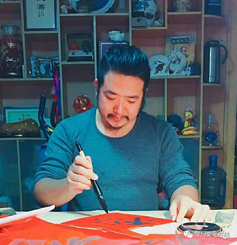 著名京剧大师袁少海先生,表演京剧并为诗人文川先生赠送一副书法作品