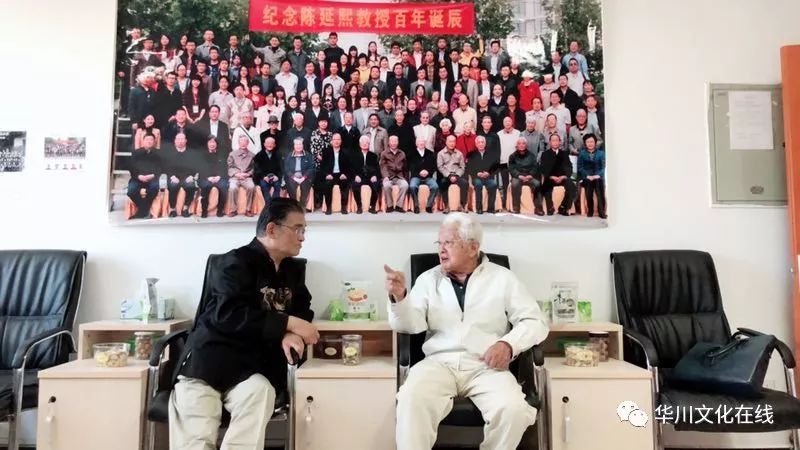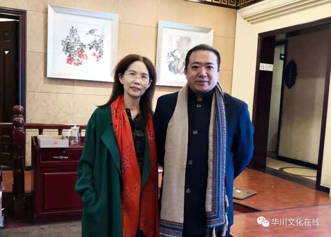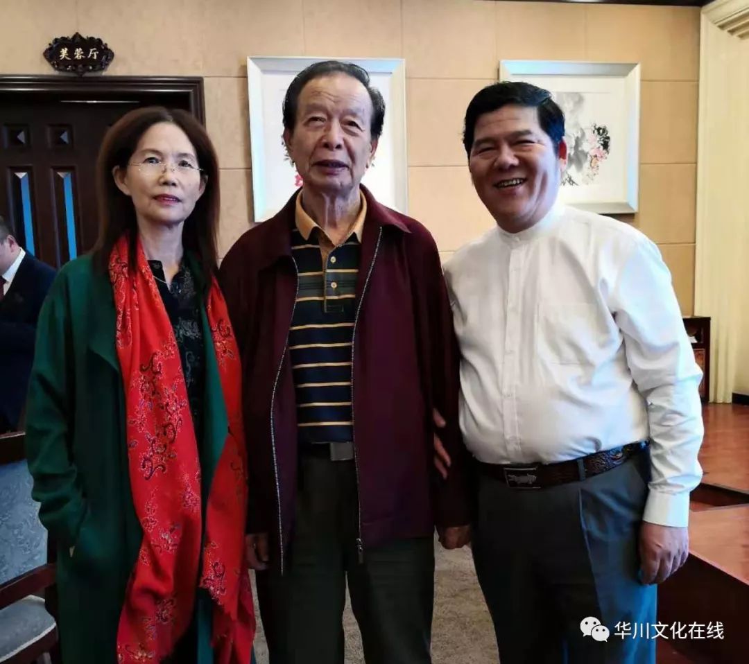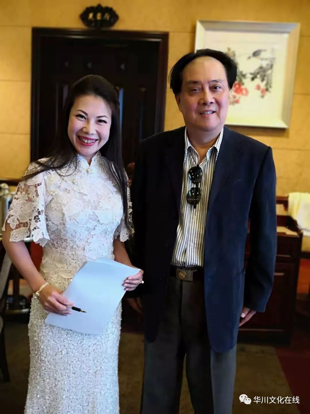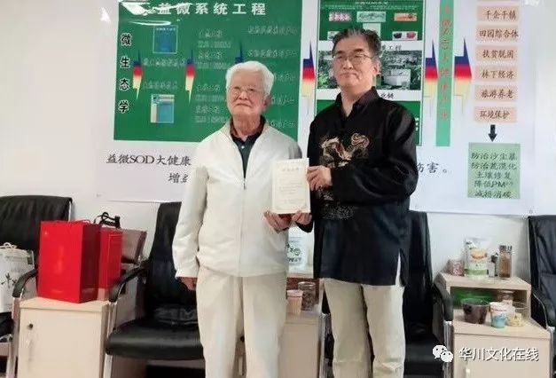 诗人文川先生与中国农业大学副校长、原北京市政协副主席靳晋教授交谈,并获中国农业大学《文川哲理诗精选》书籍收藏证书